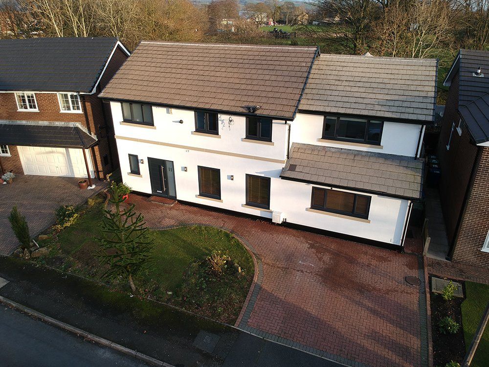 A Recently completed project in the GreenMount area of Bury, The Rendering Company installed a Wetherby 1.5mm silicone render system with Build lite Preformed Stone lintels and band detail.